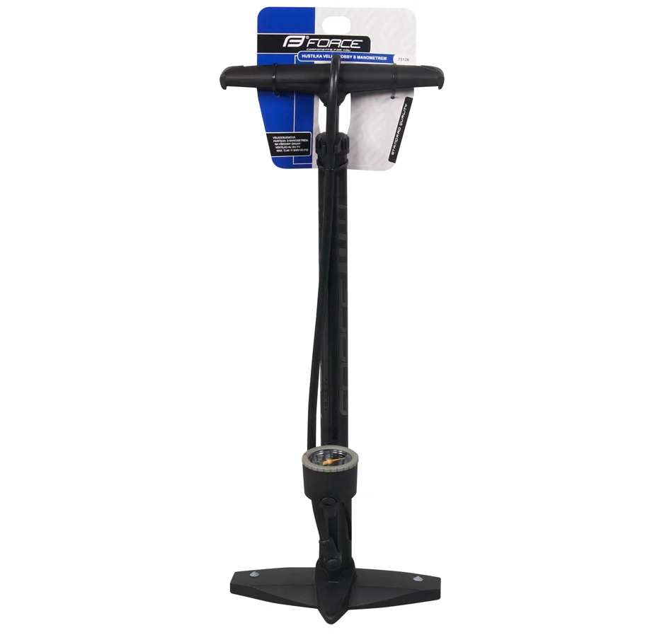 The HOBBY AL is a high-performance floor pump that ensures your tires are always properly inflated. With a maximum pressure of 11 bar (160 PSI), it’s perfect for both road and mountain bikes.Its durable yet lightweight aluminum construction guarantees long-lasting reliability and stability, while the universal pump head is compatible with Presta (FV), Schrader (AV), and Dunlop (DV) valves.The large, easy-to-read pressure gauge allows for precise pressure control, while the stable base and ergonomic handle ensure comfortable and efficient pumping.FORCE HOBBY AL – effortless, highly precise, and built for every cyclist!