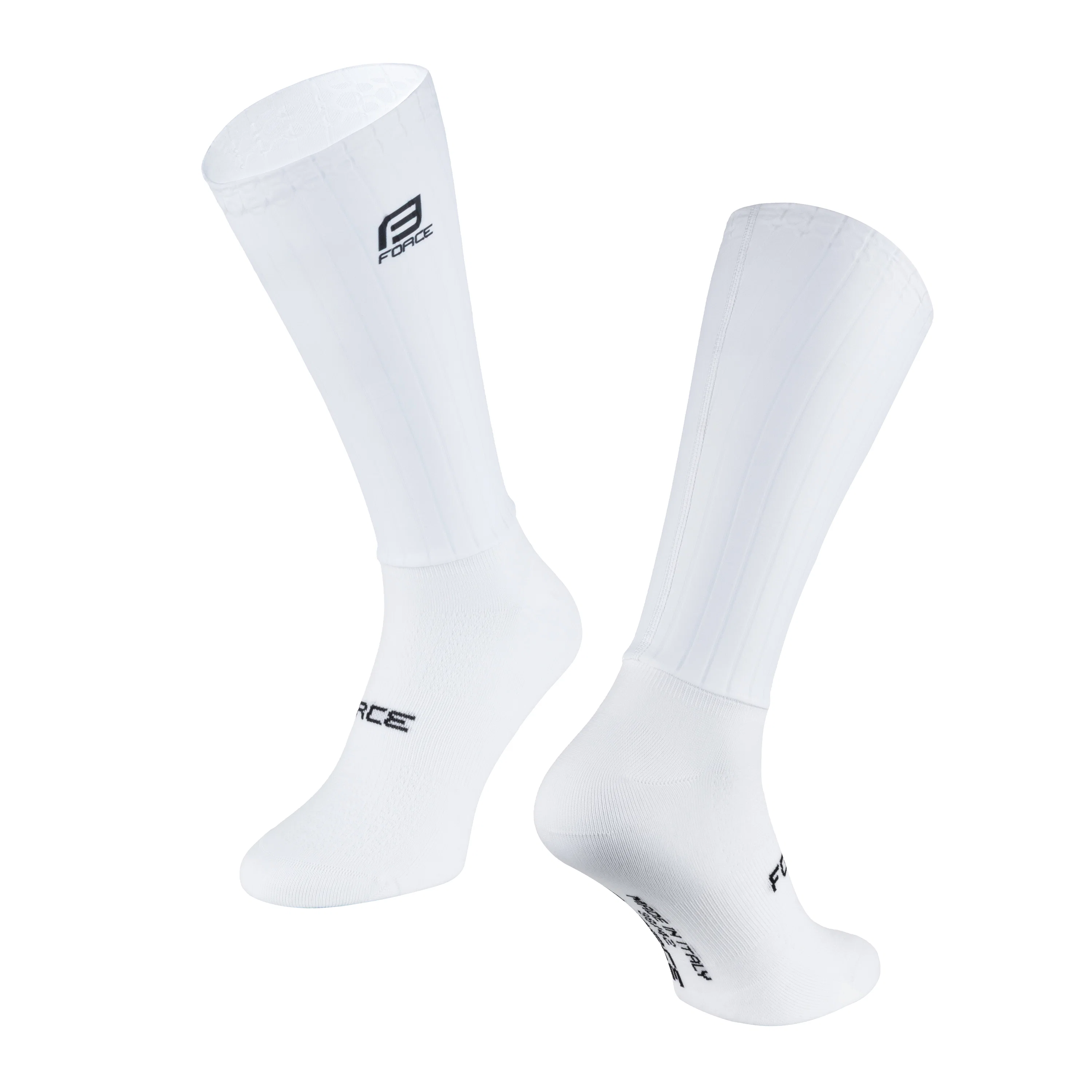 HIPPER by FORCE is a technically advanced two-part sock designed for maximum performance. The upper section, made from aerodynamic compression lycra, enhances airflow and supports muscle activity, while the lower section features a breathable polyamide knit that effectively wicks away sweat, ensuring comfort even during intense rides. The high-cut design is ideal for road cycling and competitive use. Premium Italian quality and precise craftsmanship guarantee reliability and long-lasting durability.