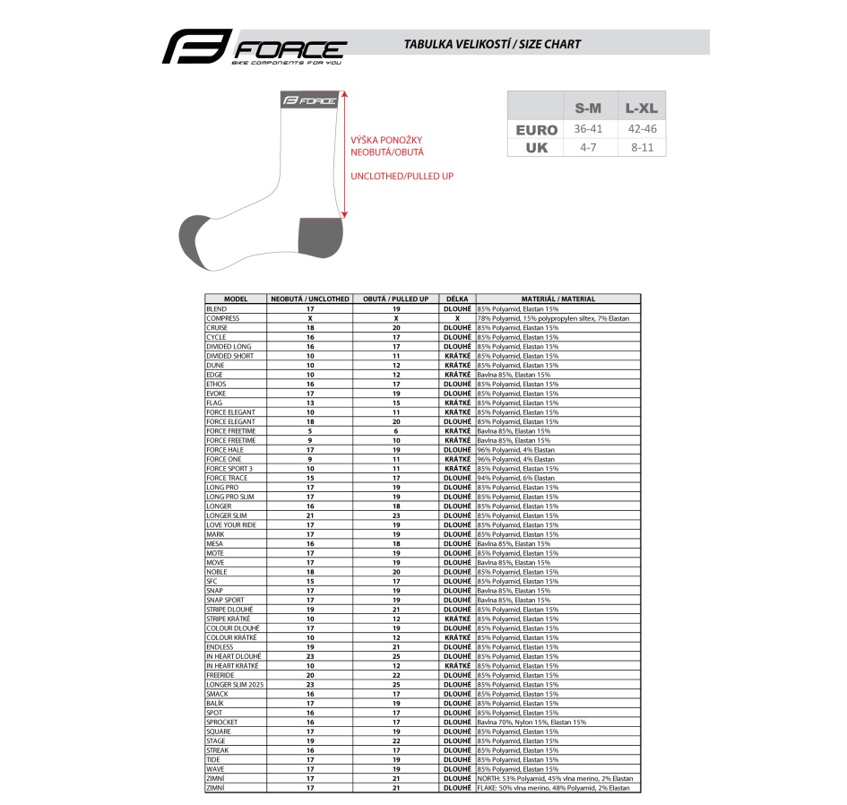 higher cycling socks FORCE suitable for other sportssize S-M corresponds to EUR 36 - 41 / UK 4 - 7