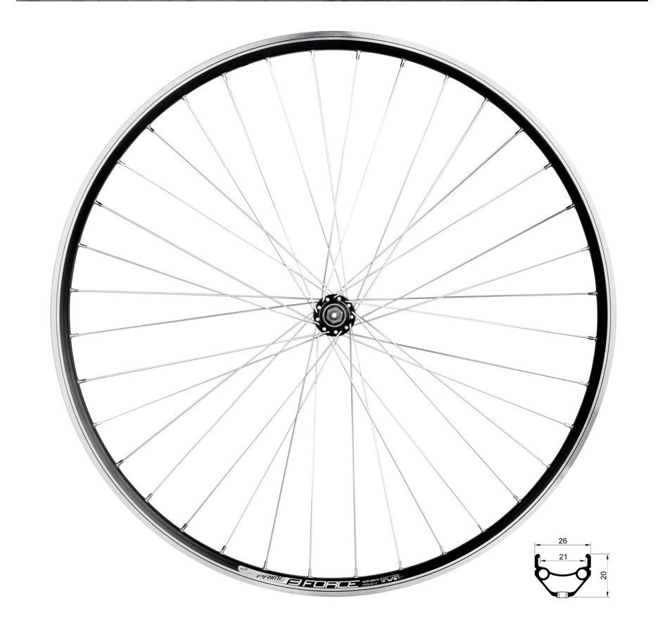 28/29" zapletené kolo přední FORCE PRIME 622x21broušený bok, nýt, 36 děr, černý
