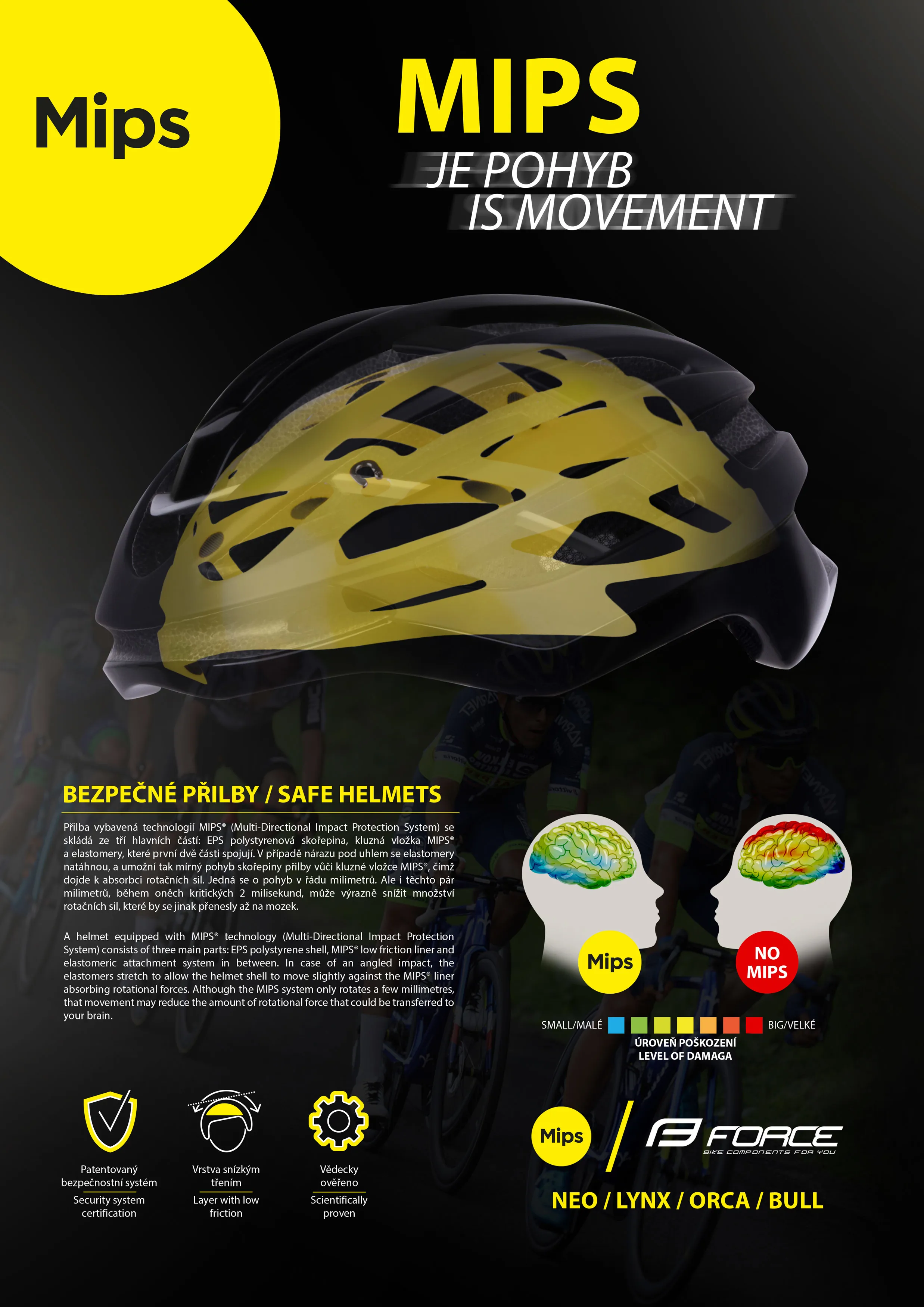 MIPS systém pomocí pružně uchycené skořepiny uvnitř přilby